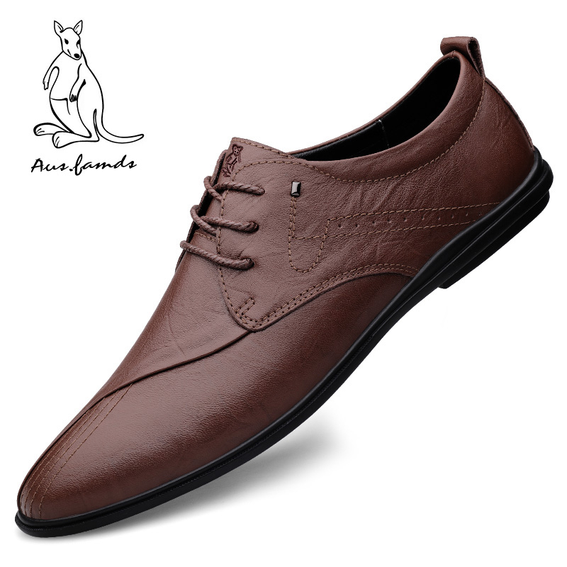 澳洲名袋鼠真皮软皮皮鞋男士头层牛皮真皮软皮男款高档潮流英伦风圆头