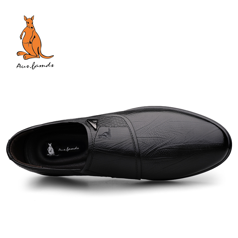 澳洲名袋鼠真皮软皮皮鞋男士头层牛皮真皮软皮男款高档潮流英伦风圆头