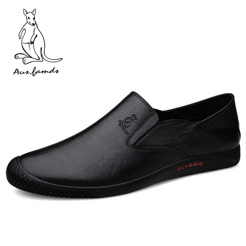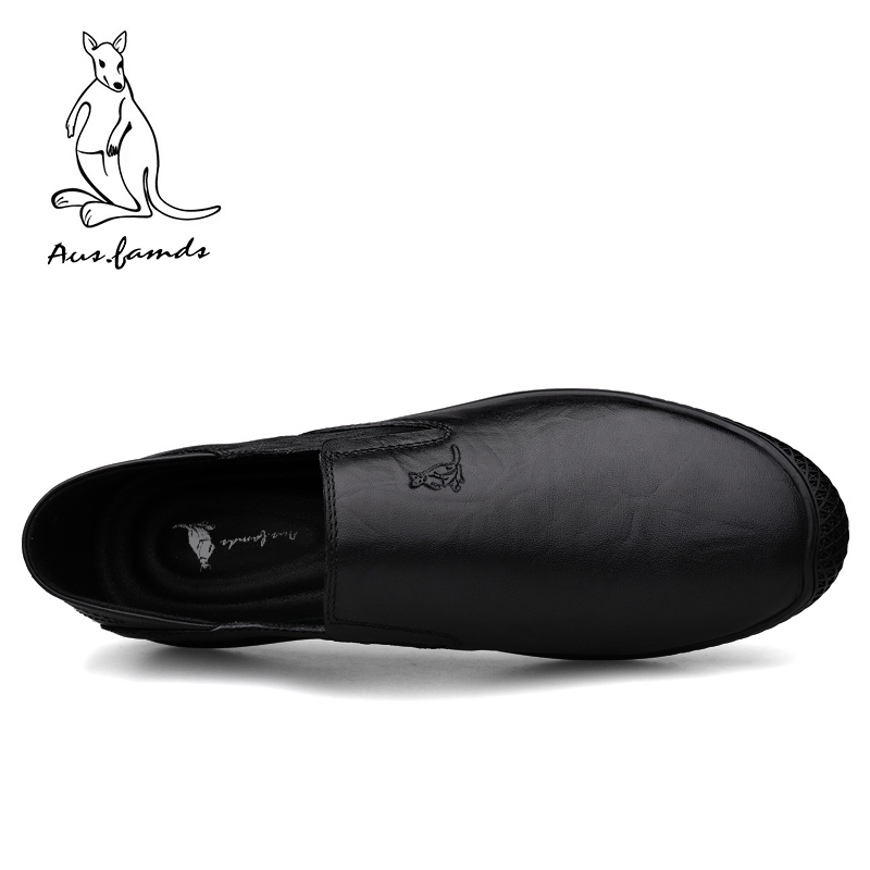 澳洲名袋鼠新款皮鞋男士真皮休闲百搭软皮软底潮流套脚一脚蹬可踩男鞋