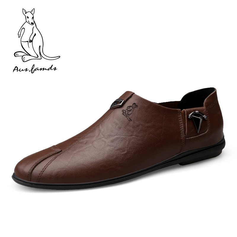 澳洲名袋鼠男士休闲皮鞋男款春夏新款高档透气软皮一脚蹬豆豆鞋男