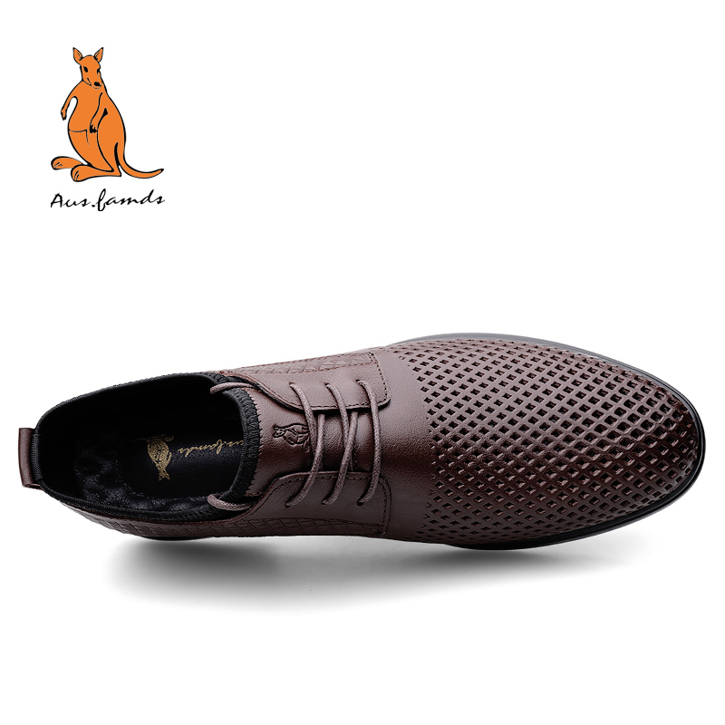 澳洲名袋鼠男士真牛皮休闲皮鞋2021新款男款头层牛皮软皮软底高档